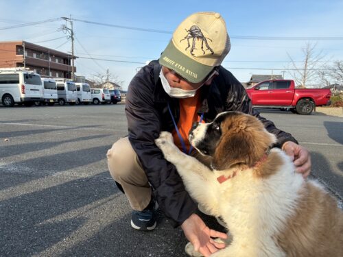 ゴミの分別の合間、ひとときのふれあいに癒され…